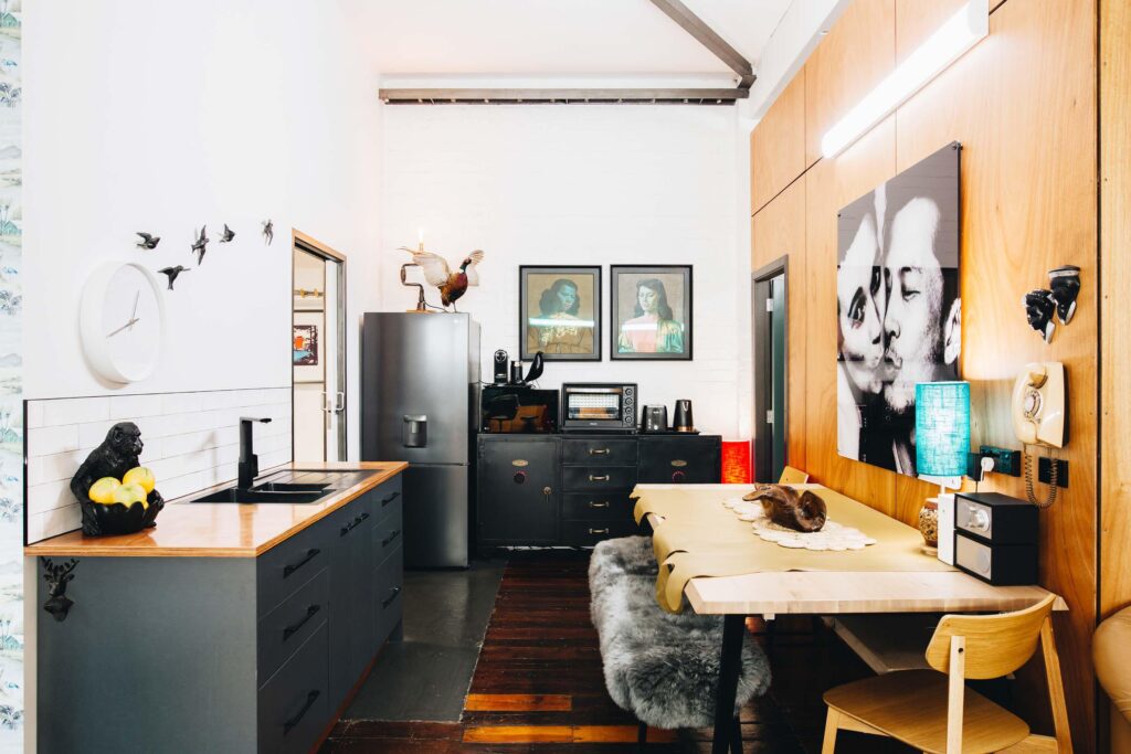 The couple signed on the dotted line in late 2017 and immediately moved into construction mode. The bulk of the work involved earthquake strengthening, which took around six months, and then they ripped into making the space their own.