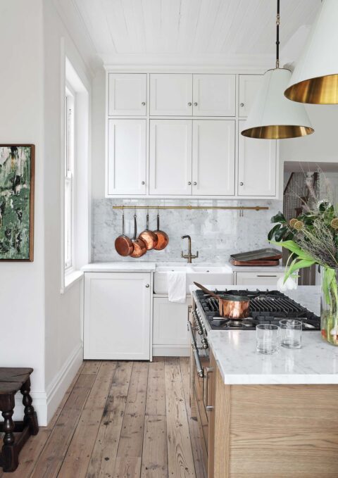 1 Decorating the walls with paint and plants – I couldn’t be more in my element. One of the best things about this project is that whatever you create, it will be totally original. I used dyed preserved flowers – ming fern, classic fern and eucalyptus – which you can buy online. You could also dry your own plants or use fresh ones – they just need to be relatively flat. You’ll also need Resene testpots, paintbrushes and painter’s tape.