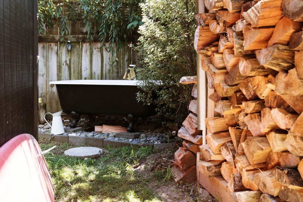 I love our garden because it is so connected to the house. It is small but functional and feels very integrated with the way we live. We have compact fruit and vegetable gardens and I love the wild flowers that have gotten slightly too wild this summer. Our outdoor bath is used regularly in the cooler months – there is nothing better than watching the stars from a bathtub.