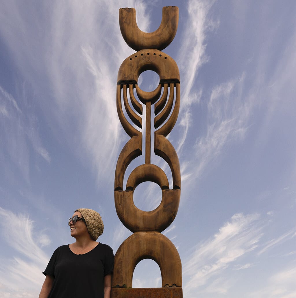 Full-time practising artist Oriah Rapley’s exhibiting work Waka of Solace speaks to the concepts of courage and resilience. Standing 1.8-metre-high, the sculpture’s perfectly smooth lines will sooth those viewing it at the exhibition. “It’s a response to the calling of help or support,” says Rapley. “The bird navigates with her innate skills, guiding the waka to those who need solace,” she adds.