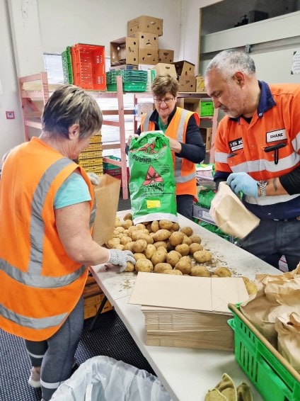Nourished for Nil helpers in action; a large part of the food-waste charity’s work is redistributing food that’s reached its best-by date or doesn’t reach customers’ cosmetic expectations.