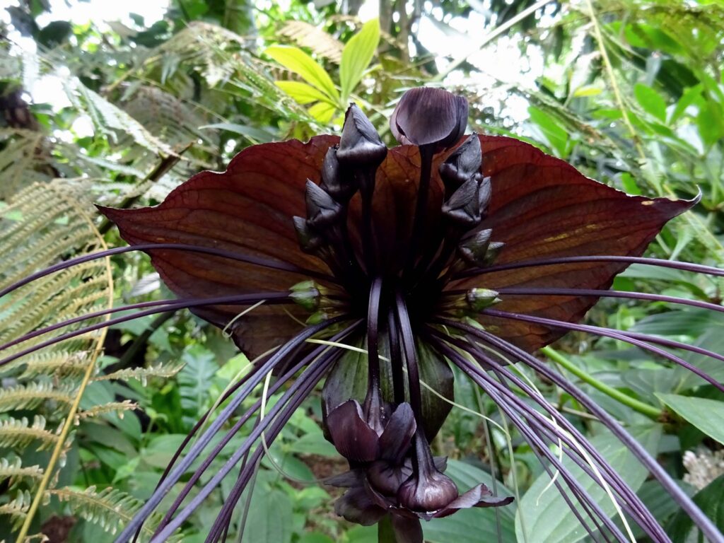 “Have you ever danced with the devil in the pale moonlight?” has to be one of the best lines ever in a Batman movie. Jack Nicholson uttered the words as the Joker, then Prince made them even cooler in his song “Batdance”. Which all thematically relates to tropical herb Tacca chantrieri, also known as the bat flower, the devil flower and the cat’s whiskers (and I hadn’t even got to Catwoman yet). Definitely a collector’s plant – you won’t stumble on it at your local garden centre – but it can be viewed in our most Gothic city, at Otago Museum’s Tūhura Tropical Forest.