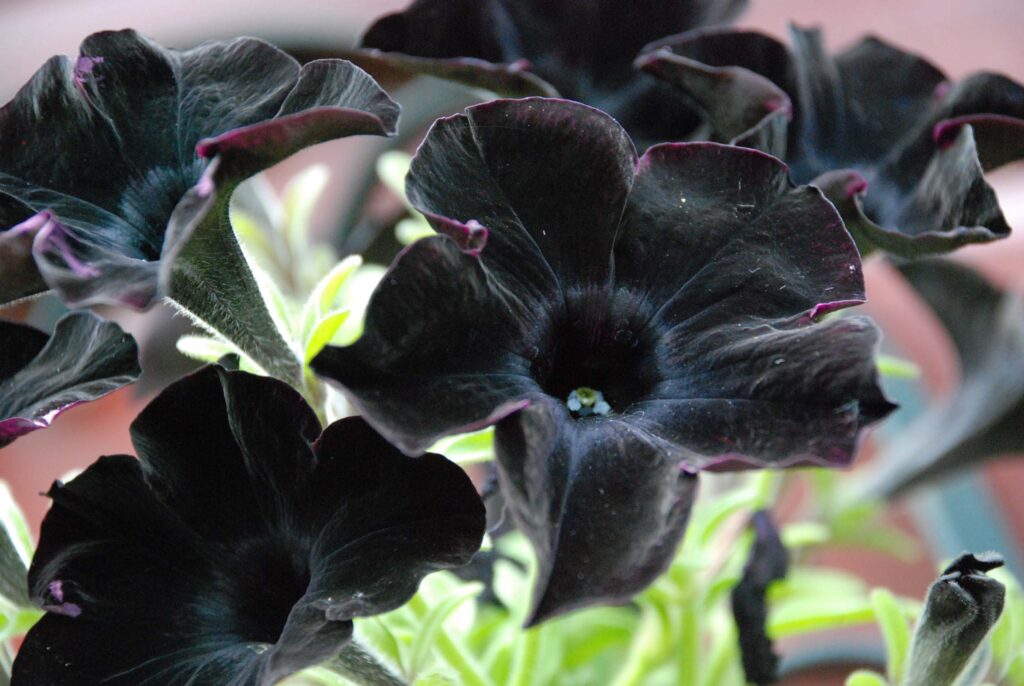 Whether clothed in red and white circus-tent stripes or bursts of candy pink, petunias have been considered cheerful but slightly frumpy hanging-basket flowers. Then in 2011 plant breeders in the UK released ‘Black Velvet’, touted as the first truly black flower in the world, and petunias grew up. The result of four years of plant breeding using pollen from a mutant petunia (no GM here), it truly is a velvety black cat of a bloom, although some spoilsports like to point out that it’s actually a very dark purple and that the quest