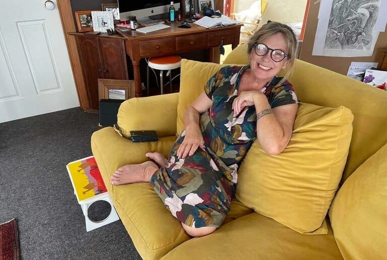 Shifting over from the initial more brutal chemotherapy to Herceptin meant normal daily challenges became doable once again. Over the following years, in between regular treatment journeys to Auckland hospital, Danielle was able to return to working part time as a landscape designer. And, in her spare time, she focused on designing and creating safe havens with Juliet, Leo and David for endangered native species and birds on the island, as habitat loss is a significant contributing factor to many of Aotearoa’s species, and birds’ extinction risk. Danielle, with the help of her children and partner, also embarked on painting a large, colourful mural on a grey concrete wall of native species, including invertebrates and the local bird life, down at the busy Palm beach corner café Arcadia on Waiheke Island.