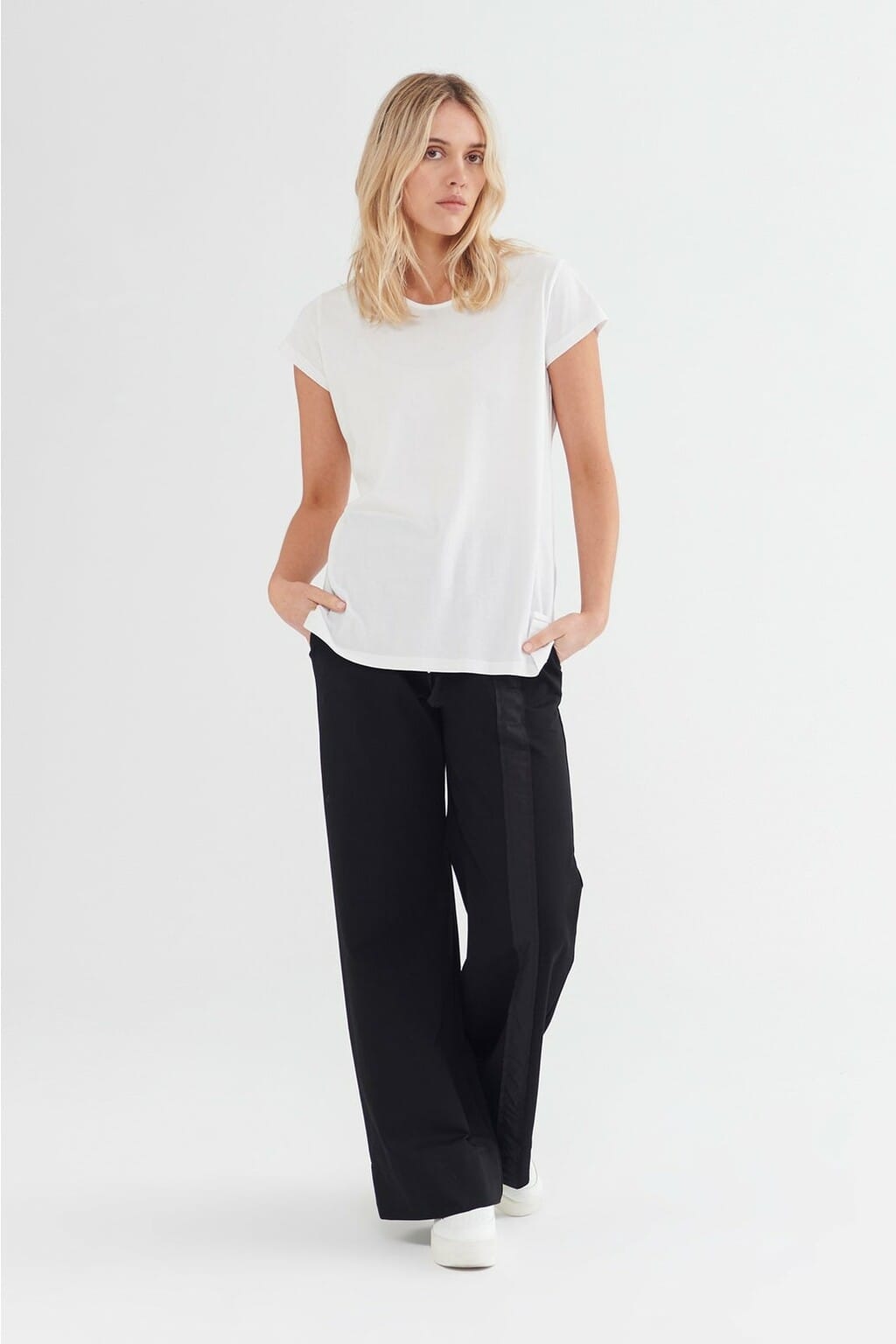 I can’t fault Maggie Marilyn’s 01 Range. Every piece works together, but individually, slides seamlessly into any wardrobe. The 01 T-Shirt’s fluted sleeves are what gives this piece the standout silhouette that is incredibly sophisticated with a feminine touch. The flare sits flat on the arm, and adds interest to a classic outfit.