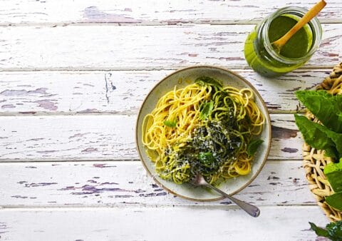 2. In a blender, blitz cashews with yeast, lemon juice and salt, pouring in enough water to get it moving in the blender and to create a smooth, creamy texture.