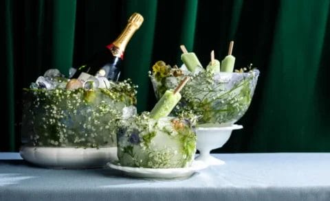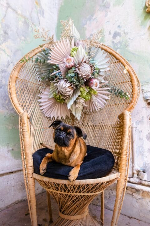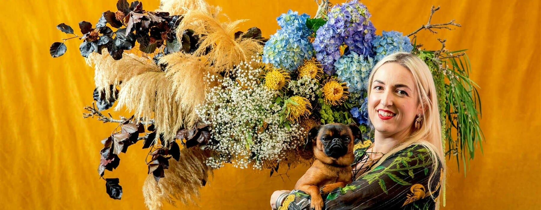 Thy eternal summer shall not fade with floral artist Georgie Malyon’s gorgeous suspended arrangement of flowers and foliage that will dry in situ.